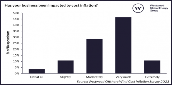 In an offshore wind cost inflation survey of industry players by Westwood Global Energy Group (Westwood), nearly three quarters of respondents indicated that they had begun to review the viability of their projects in light of recent cost increases, with over 90% indicating that decision making had slowed as a result.